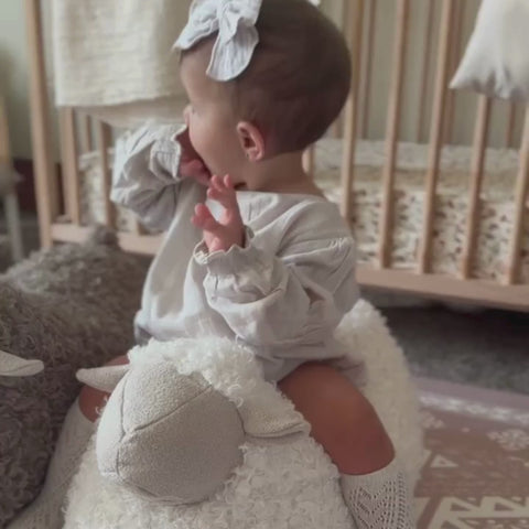 Say BAA BAA to our new sheep pouf! With a hairy coat, this pouf is perfect for your little ones to ride on to practice balance and climb up upon.