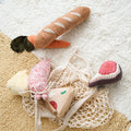 Crafted with a mix of textures and a gentle squeaker in each, this set stimulates light play and satisfies natural carrying instincts. Watch as your pup proudly parades their grocery haul from room to room!