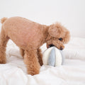 TOTO is a sensory play snuffle ball with 8 wide slots to hide treats of all sizes. The ball is made with 4 different textured fabric, adding extra stimulation for the canine mouth during the nosework session. 8 squeakers are hidden inside this total boredom buster!