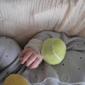 Our Tennis Rattle set comes with a soft wrist rattle shaped like a tennis ball, paired with a mini rattle racket made just right for little hands to grasp and explore. The gentle rattle inside the tennis ball 🎾 encourages your baby’s curiosity, while the wrist attachment lets them discover movement and sound even before they can hold toys on their own.